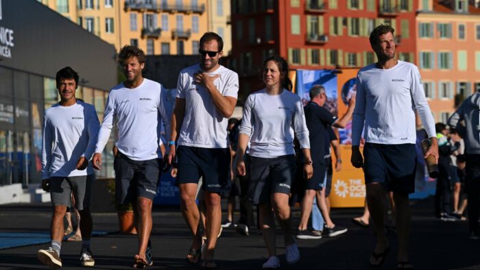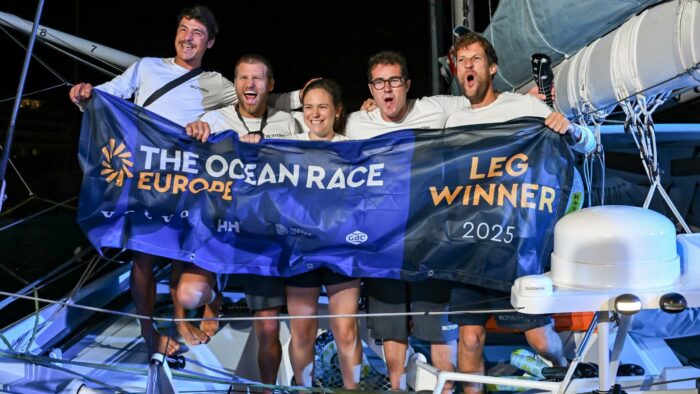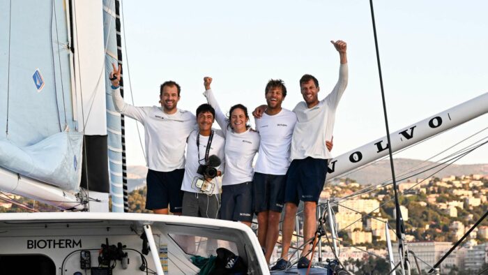Biotherm vient de franchir la ligne d’arrivée de la 5e étape de The Ocean Race Europe à Boka Bay au Monténégro en première position après 7 jours, 8 h